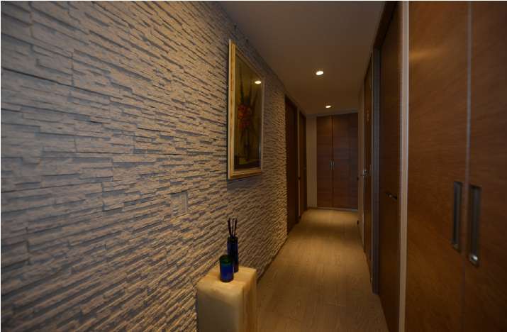 玄関ドアを開けると、まるでホテルのエントランスのような重厚感あふれる石張りの壁がお出迎え。調湿機能により、においを吸着しながら、夏の湿気や冬の乾燥を和らげ、快適な空間を保ちます。