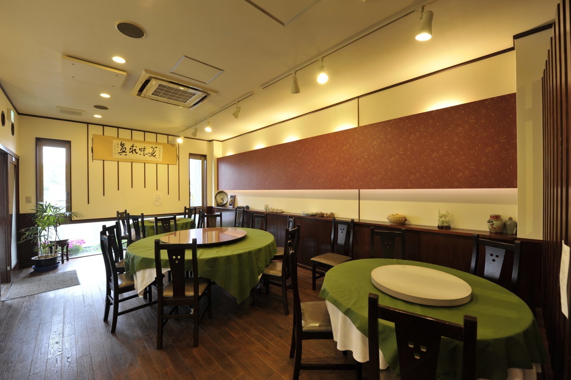 元縫製工場だった空間を本格中国料理のお店にリノベーション。m’S style料理長自ら選んだRed wallに間接照明、こだわり入れた内装にはナラの無垢フローリング・タモの腰壁・大理石カウンターなど料理に負けないこだわりで施工。料理同様インパクトのある空間でお客様をお迎えいたします。