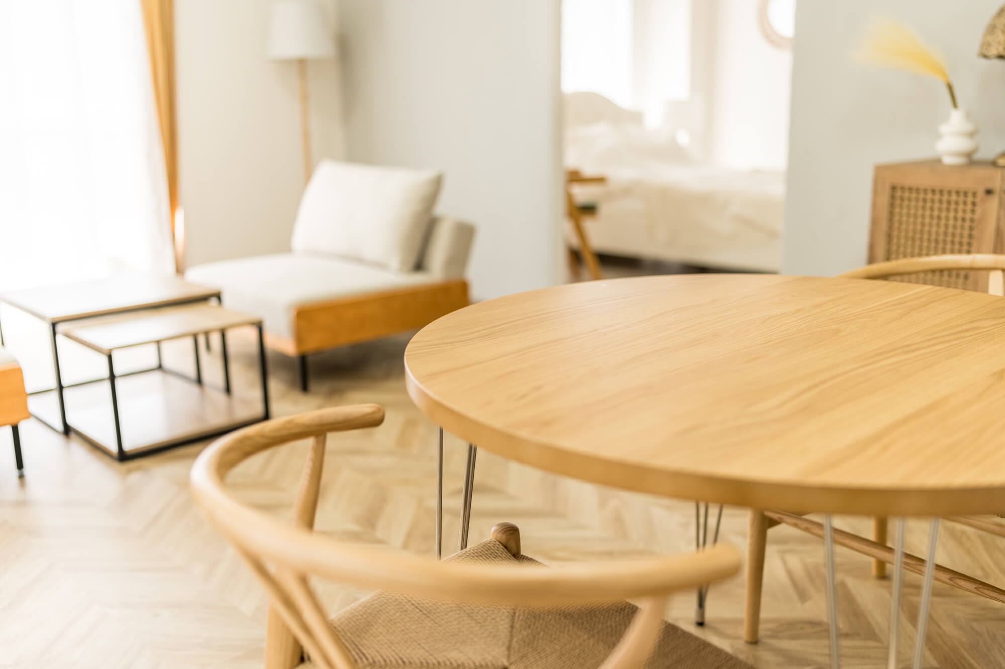 無垢材の表面の微細な凹凸や、左官壁の手仕事の跡が残るテクスチャも、光を受けると美しい陰影が生まれます。ビニルクロスや複合フローリングは時間が経つと劣化しますが、自然素材は時間とともに味わいを増していきます。