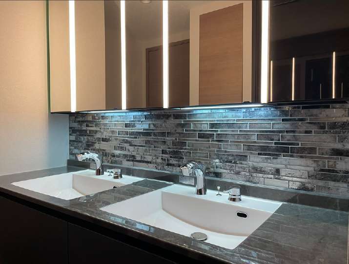 リノベーションにおいては、高級感と洗練されたデザインを重視しつつ、落ち着きと機能性を兼ね備えた空間を目指しました。海外での生活経験を活かし、開放的でモダンなインテリアを採用。素材やカラーにもこだわり、大理石やウォールナットを用いた上質な質感、間接照明による柔らかな光の演出など、細部に至るまでホテルのような洗練された雰囲気を追求しました。