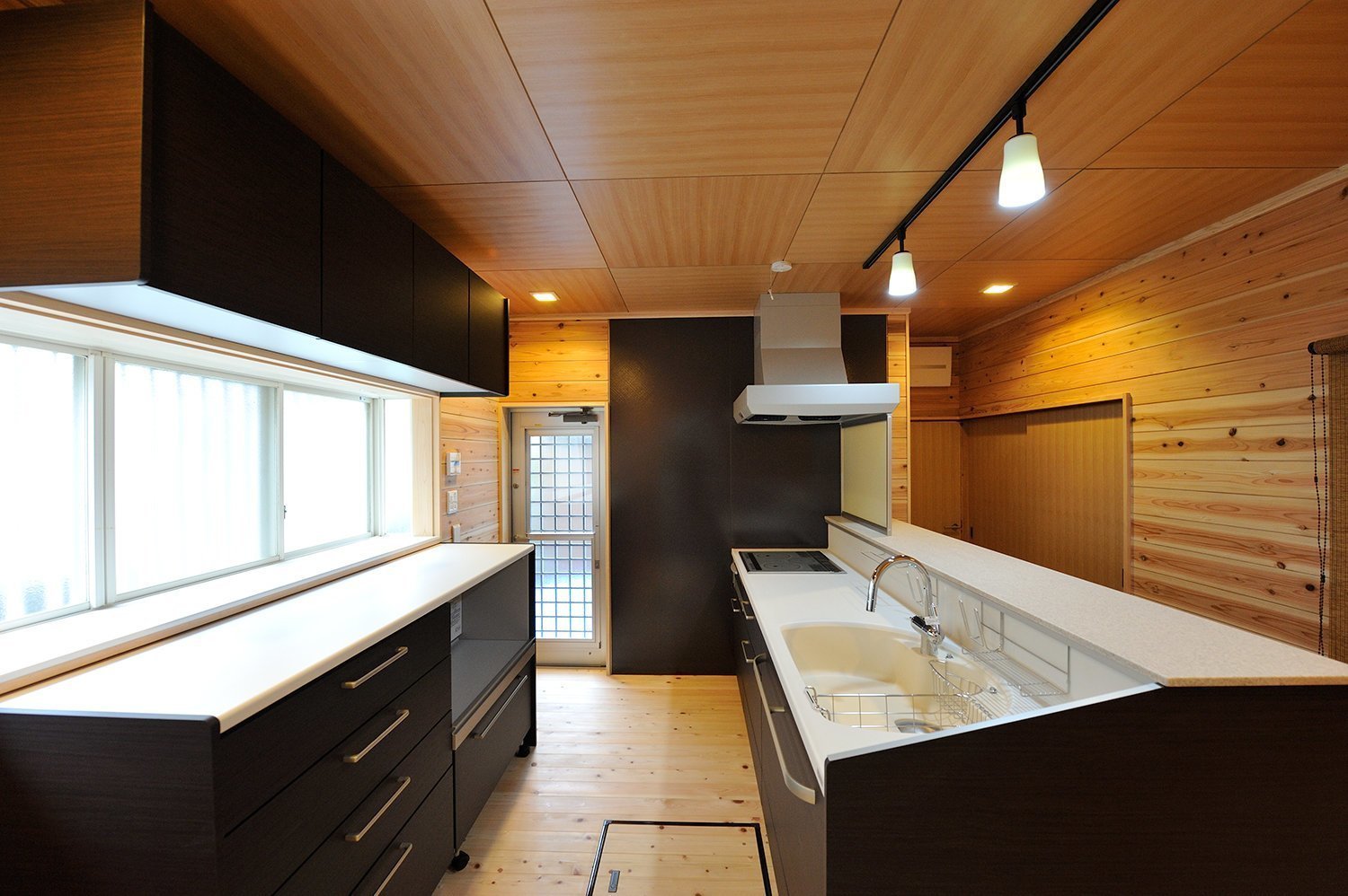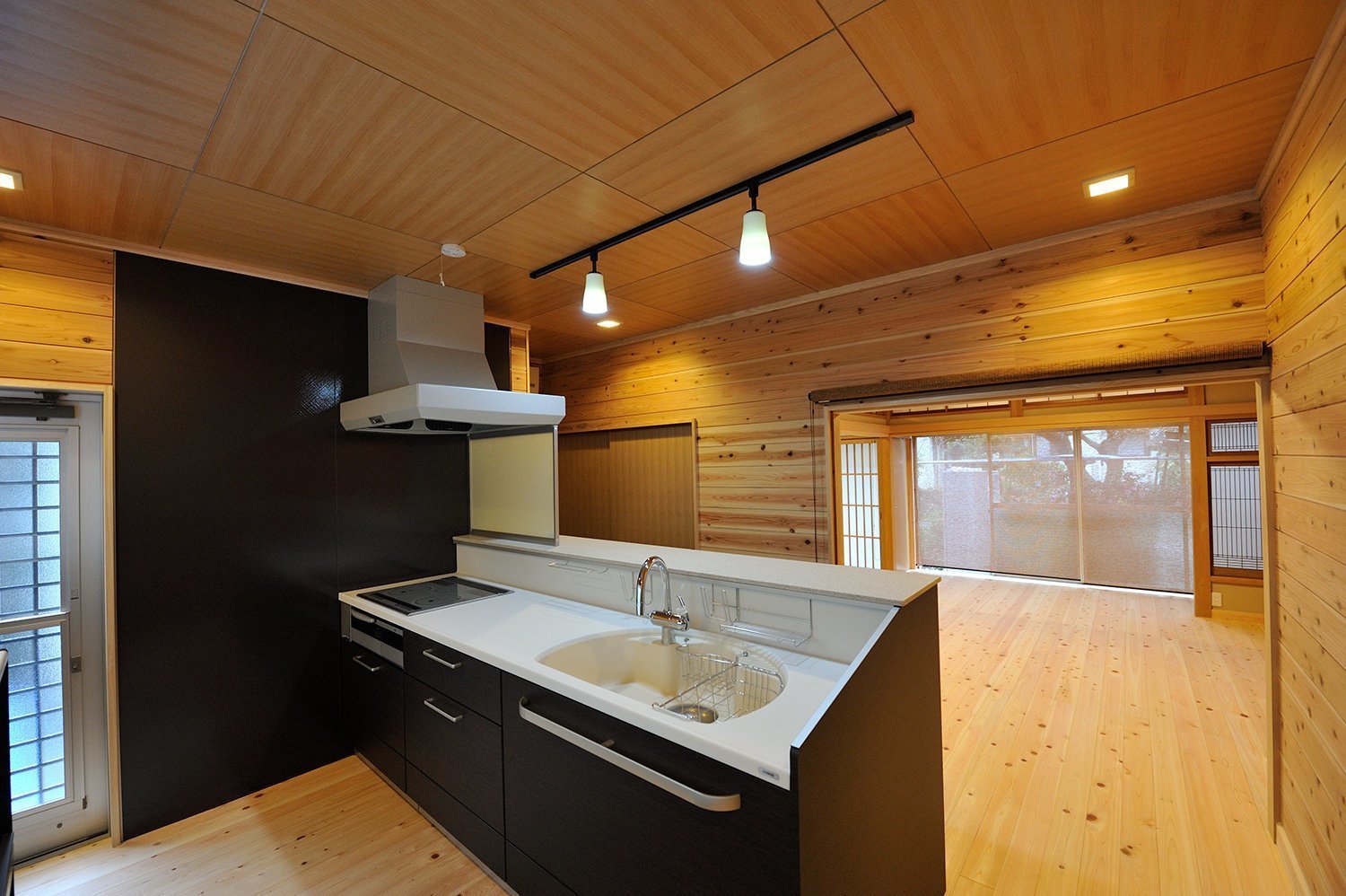 神奈川県横浜市に建つこちらの住まいは、今の時代には珍しい本格的な純和風造りの家。築45年の木造一軒家は現在ご夫婦でお住まいになっていて、様々な問題点を抱えていた。家自体の老朽化に水漏れと寒さ、加えて本や絵がお好きなご主人さまの収納量が不足していると言った状況だった。提案したコンセプトは「暖かい空間」。寒さや強度について問題があった部分は耐震補強や断熱工事で安全性・快適性を高め、新築時にこだわって作った欄間や書院などはそのまま再利用。和風造りに似合うよう無垢材と自然素材をふんだんに使用して、壁向きだったキッチンを対面式カウンターにして、みんなが使う・集まる場所へ。独立されたお子様たちが気軽に帰省ができ、親戚など大勢が集まってもくつろげる暖かい家になりました。