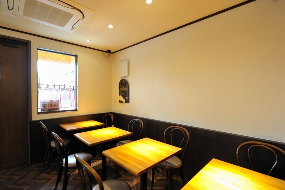 住宅の1階部分を店舗に使用しており、その部分をリニューアル。オーダーしたタモ材で腰壁やカウンターなどの仕上げ材を統一。木目の紋様が落ち着いた雰囲気を醸し出し、より一層食事が楽しめる空間へ。地元の方には、こだわりの本場インドカレーをゆっくりと堪能して頂けたらと思います。