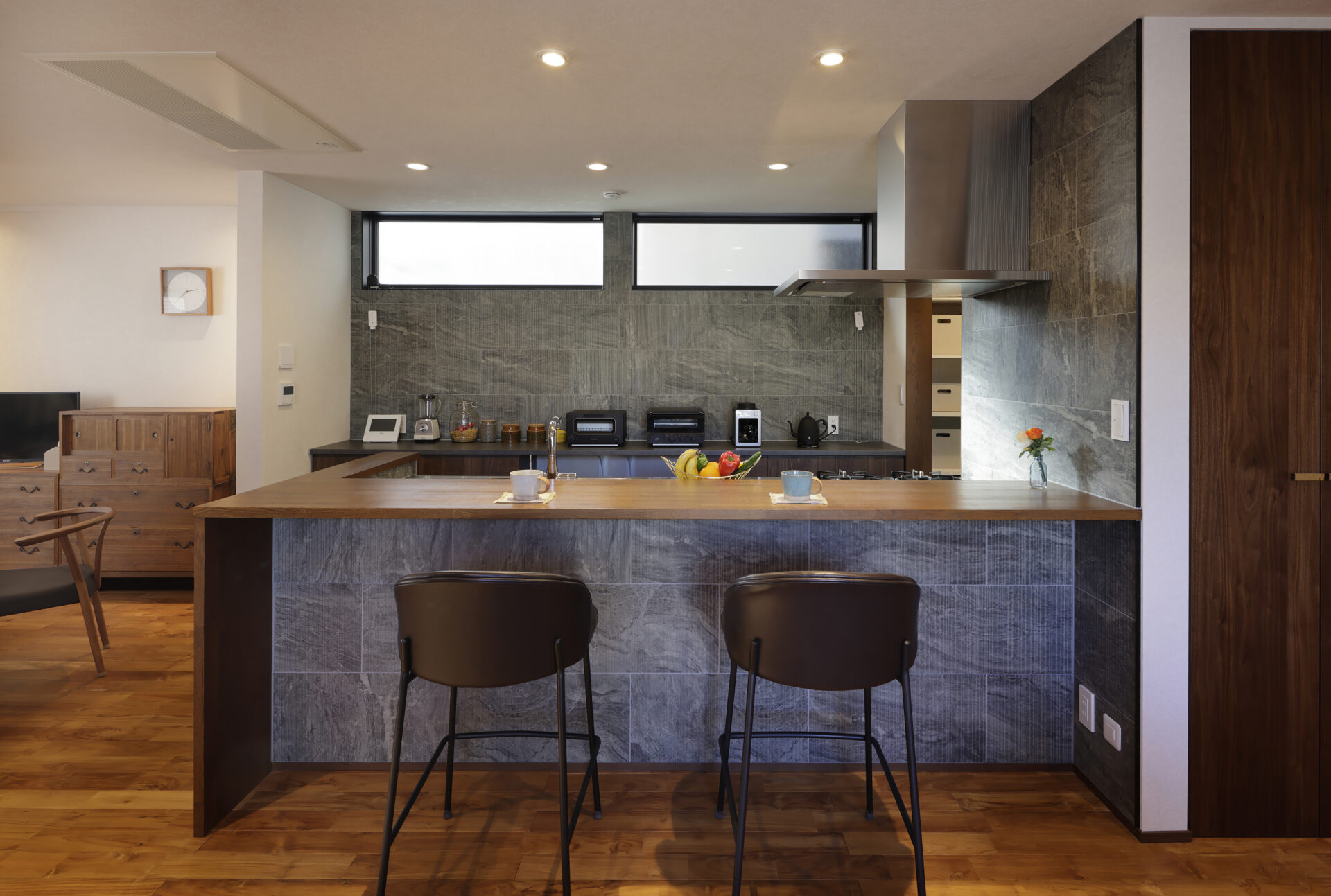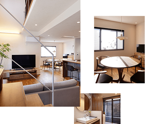 家族が集うダイニングへ自然に繋がる動線や、使う人に寄り添った設計を大切にしています。生活の中心として、暮らしを支える空間です。