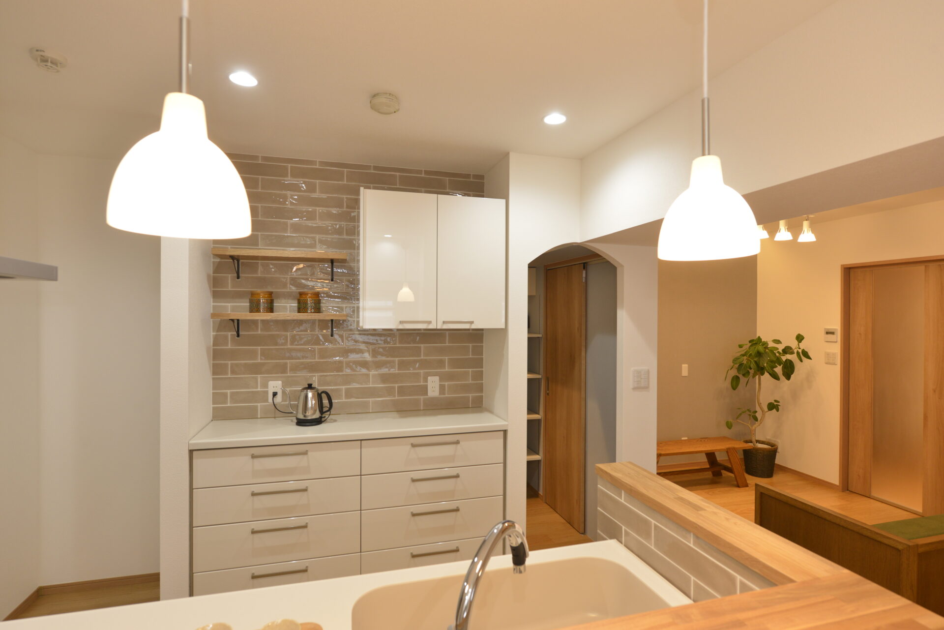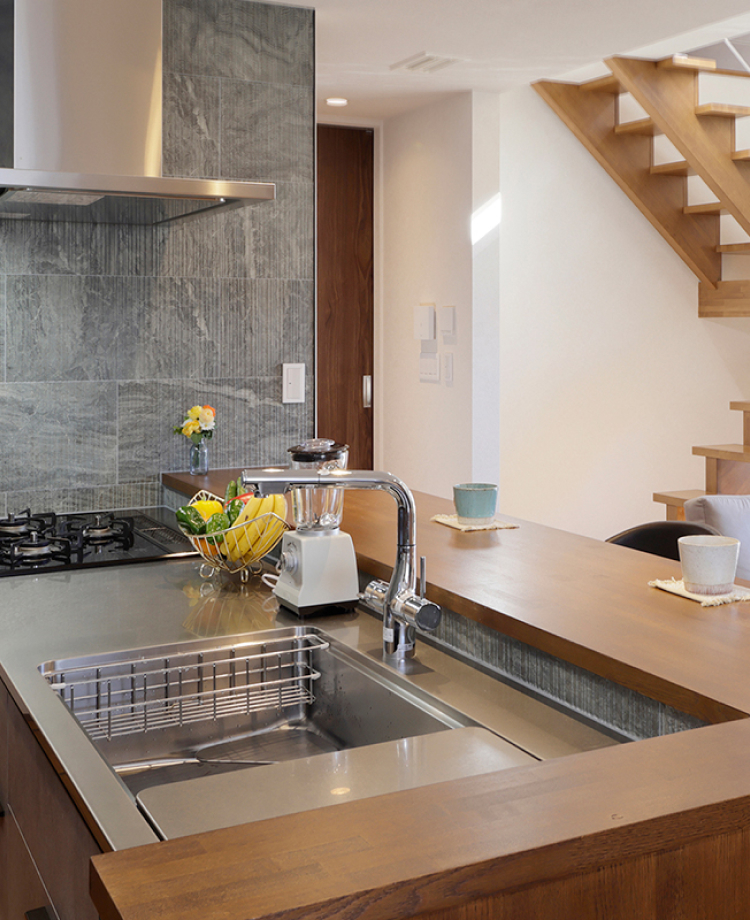 タイルとオーク材を活かした温かなキッチン